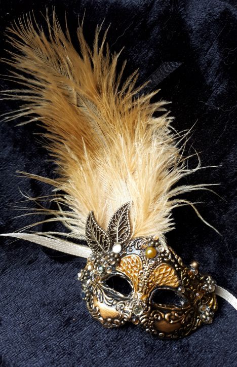Miniature mask with feather.