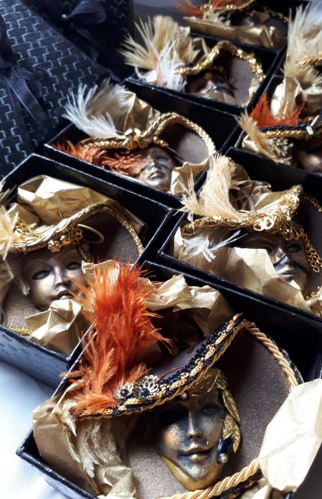 Miniature hat mask in box.